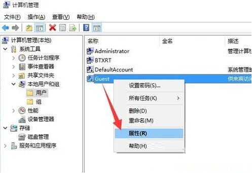 win10如何开启Guest帐户 win10开启Guest帐户的操作如下: 1、右击开始,选择计算机管理,计算机管理界面中,定位到: 计算机管理--本地用户和组--用户 在右侧找到并右键点击Guest帐...