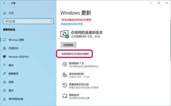 在Windows 10 系统上,系统更新是通过在更新和安全窗口中检查更新来完成的。如果Windows 更新窗口显示:您的组织已禁用自动更新,则Windows 10系统将无法更新系统。Windows更新窗口中显示...