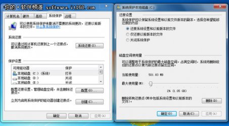 在Vista中,有关于系统还原的设置选项很少。这一点在win7中终于有了改进,有几个实用选项可供选择。 ▲设置Win系统还原 点击开始按钮,右键点击计算机-属性-系统保护-配置,在这里,...